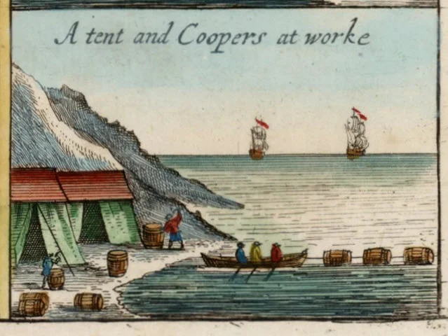 The whalers - galleons - were almost always bigger and better equipped than the cod ships. As many as 120 men boarded the whaler and these men often came from across a large span of territory as there were never enough men available in one city to outfit a galleon.