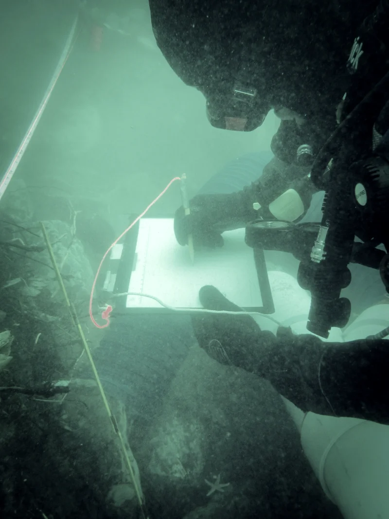 In 2003, a local diver and friend of the Gateway project in Harrington Harbour did a preliminary dive at the site and reported the presence of numerous roof tiles, some whale bones as well as recuperating large pot fragments found lying at the bottom.